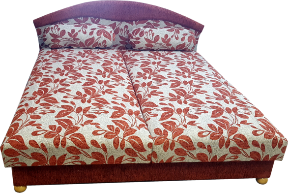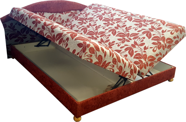 Kétoldalra nyíló fekvőfelület, csapozott fenyőkerettel, erősített rugózattal. Alatta teljes méretű, fehér laminált ágyneműtartó, esztergált tömörfa golyólábakkal. Csak 160-as és 180-as széles méretben rendelhető.