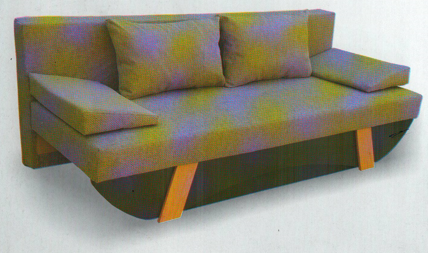 Keresztfekhelyes kanapé. Az ülőlap előrehúzása után hozzáférhető az ágyneműtartó. A háttámla lehajtásával alakítható ki a fekvőfelület.