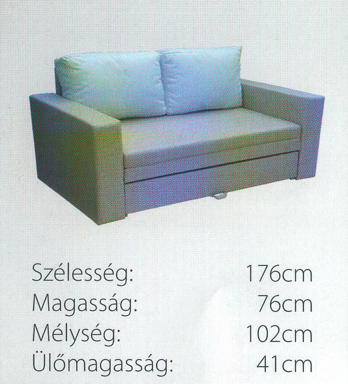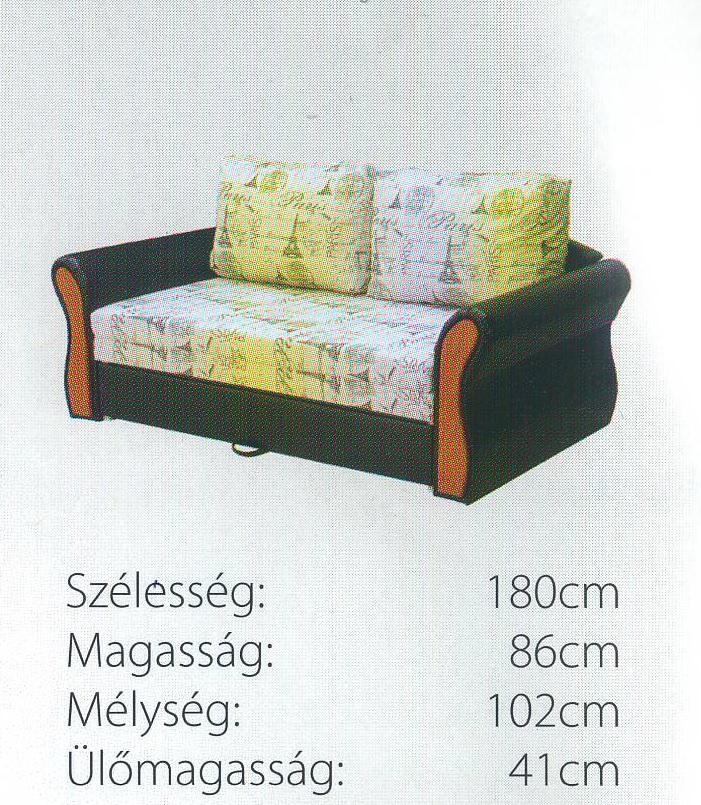 Klasszikus kialakítású, hagyományos nyítású bútor. Főleg ifjúsági bútornak tudjuk ajánlani, illetve nyaralóba, vendégszobába. Kocka, illetve íves karral (fabetéttel rajta) is rendelhető.